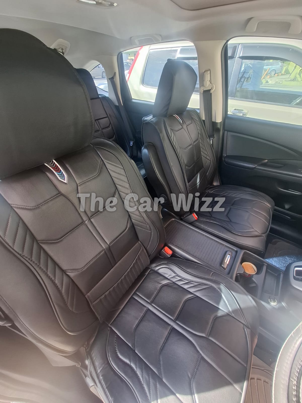 Upgrade your vehicle’s interior with these premium black synthetic leather seat covers, featuring a bold textured pattern and precision-stitched panels for a modern, upscale look. Designed with built-in lumbar support, they offer enhanced driving comfort while protecting your original seats from everyday wear. The sleek matte finish and premium cushioning create a clean, luxurious feel that elevates any cabin.