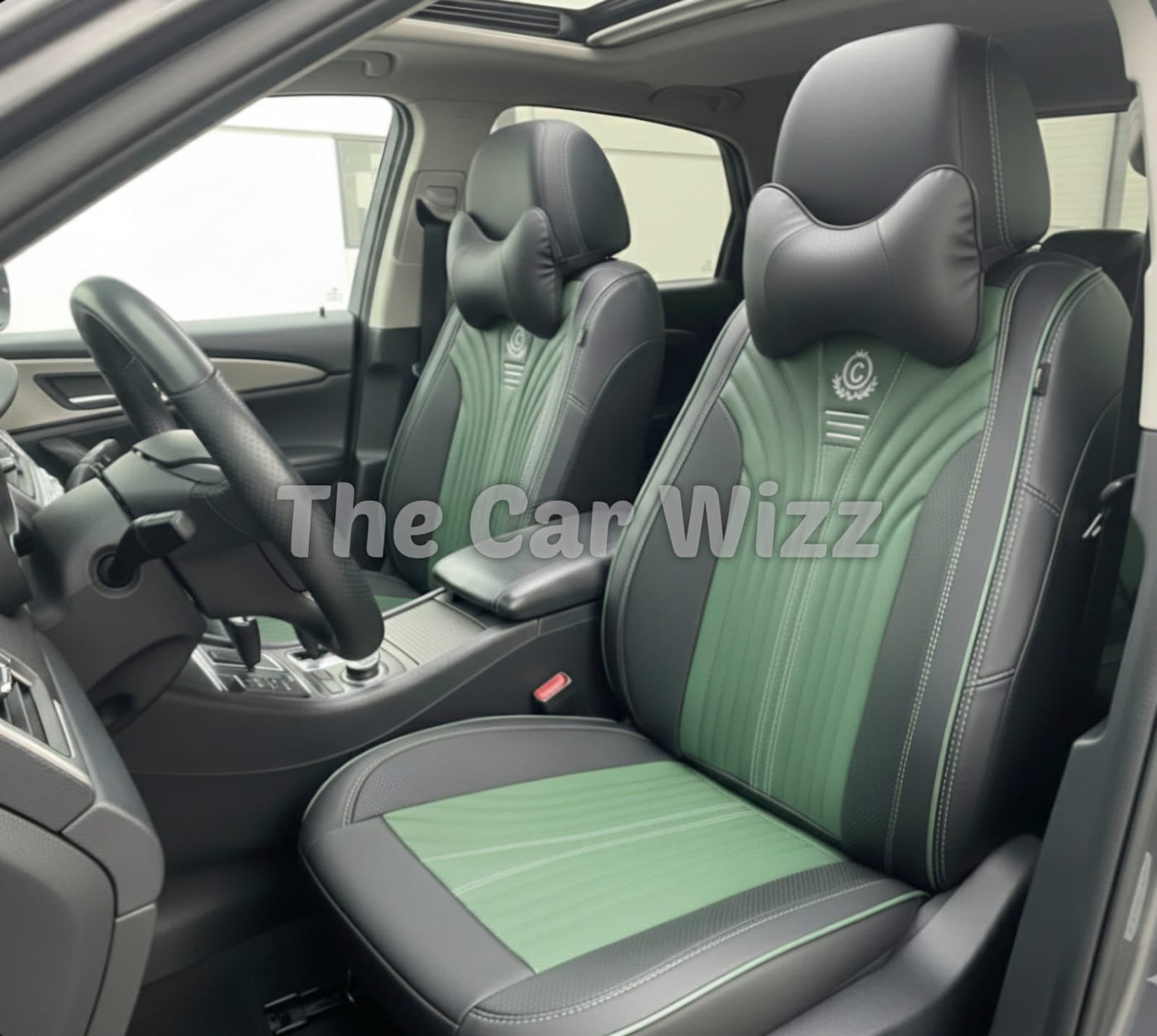 Elevate your car’s interior with our Supreme Green & Black Synthetic Leather Seat Covers, designed for style, comfort, and durability. These covers combine premium materials with ergonomic design to provide a comfortable ride while protecting your seats from wear and tear. The striking green center panel adds a unique touch, making your vehicle stand out on the road.